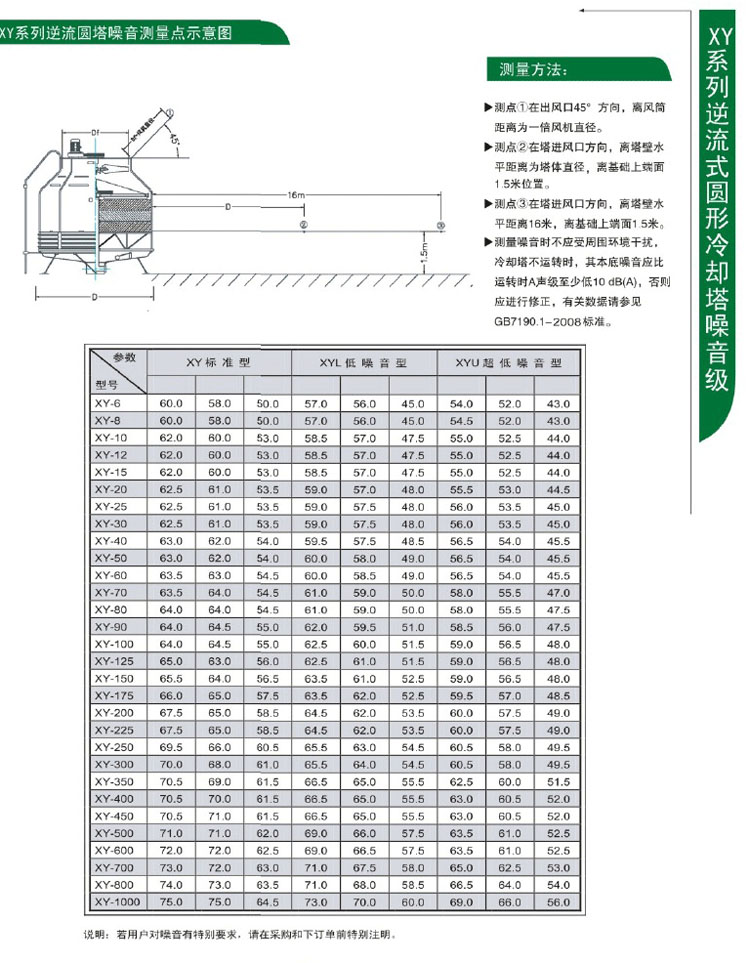 | XY系列逆流圓塔噪音測(cè)量點(diǎn)示意圖 |